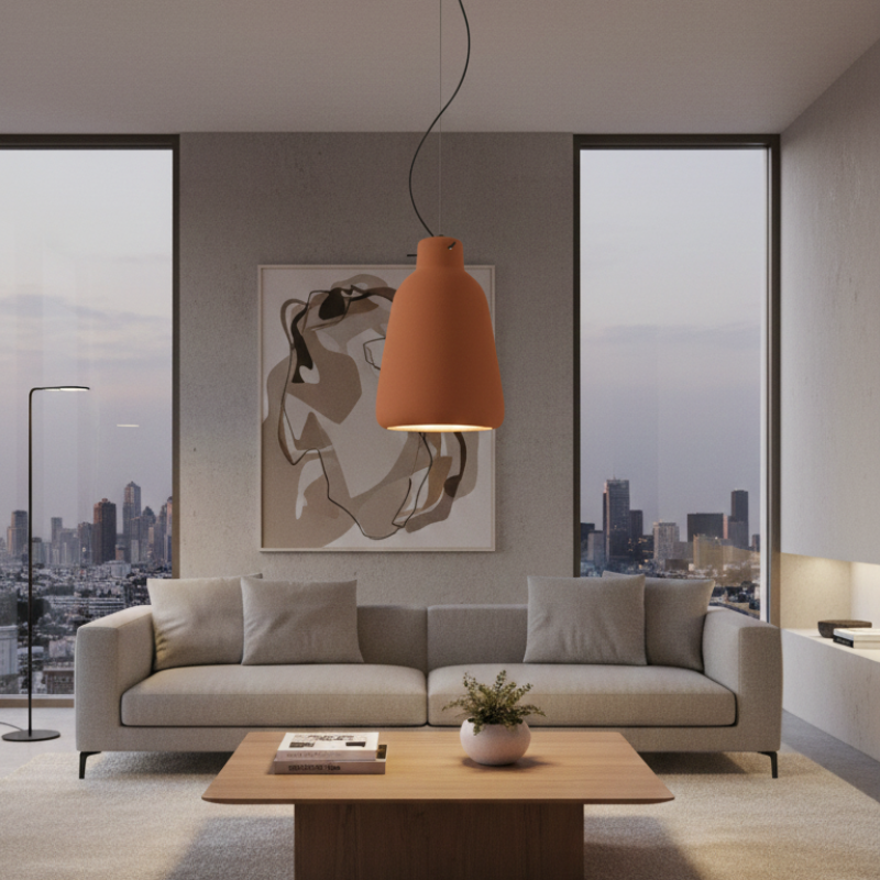 Questa lampada a sospensione è un perfetto esempio di design minimalista contemporaneo, capace di unire calore materico e pulizia formale. È la scelta ideale per chi cerca un elemento d’arredo che sia allo stesso tempo funzionale e di forte impatto estetico.