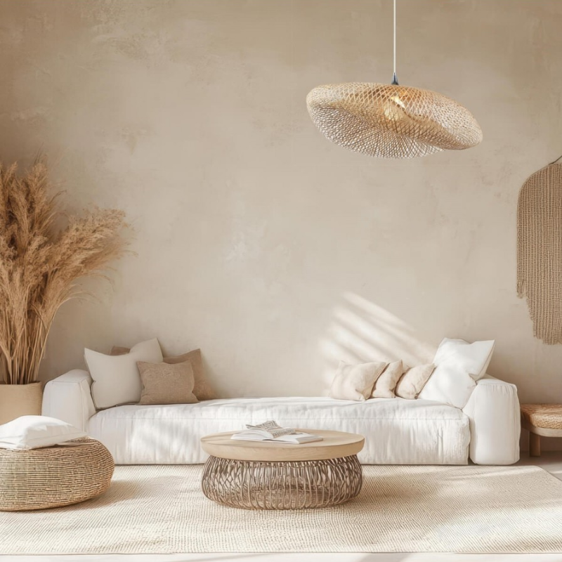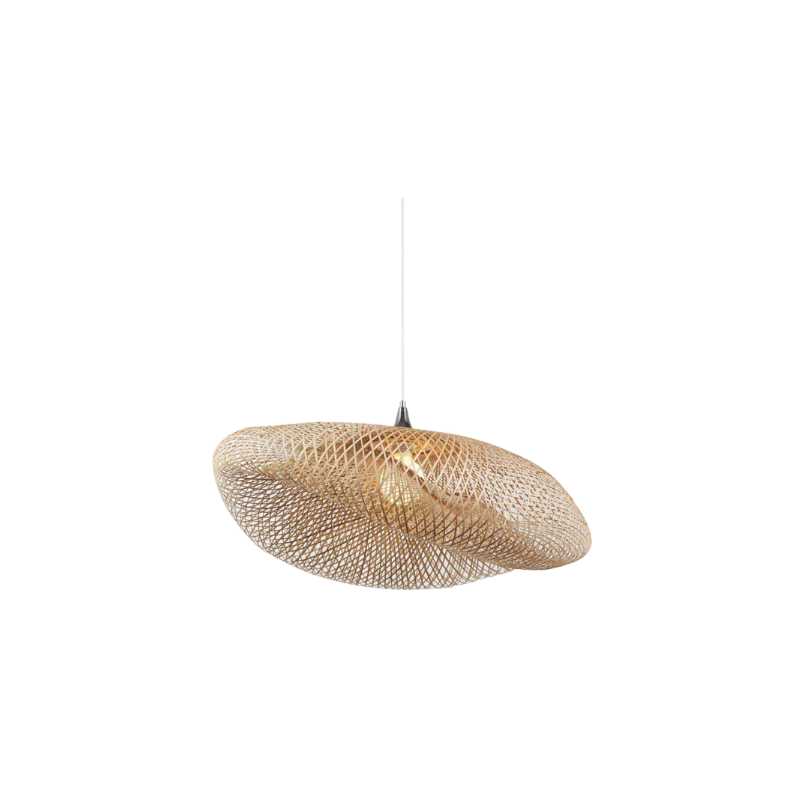 Questa elegante plafoniera combina il bambù naturale con una base in metallo, conferendo un tocco elegante e naturale al tuo spazio.