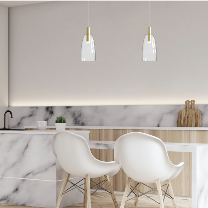 | Colore e materiale | Alluminio oro opaco - Base bianco opaco - Vetro trasparente - Acrilico |