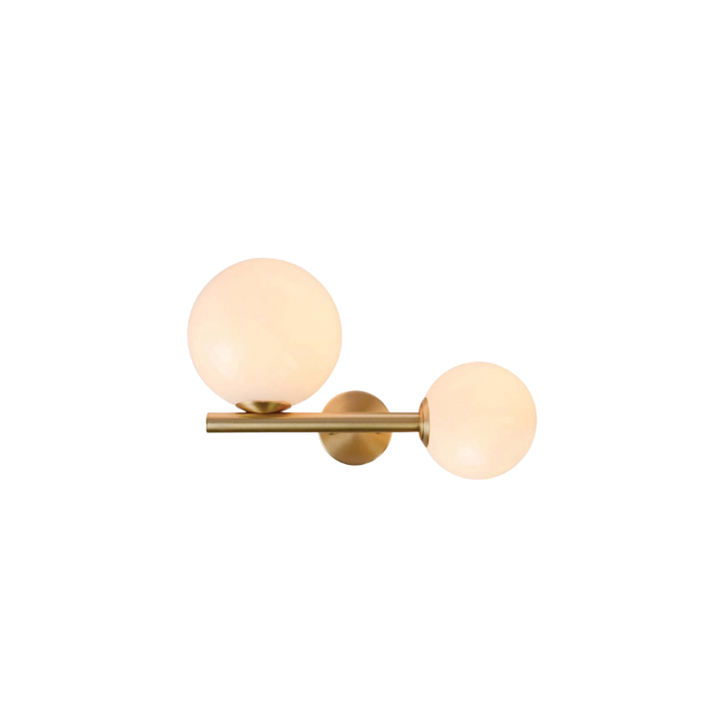 La lampada da parete 1996 è una sofisticata lampada decorativa per interni, realizzata a mano. Presenta una base in metallo con finitura oro opaco e vetro opalino, che offre un'illuminazione morbida e uniforme.