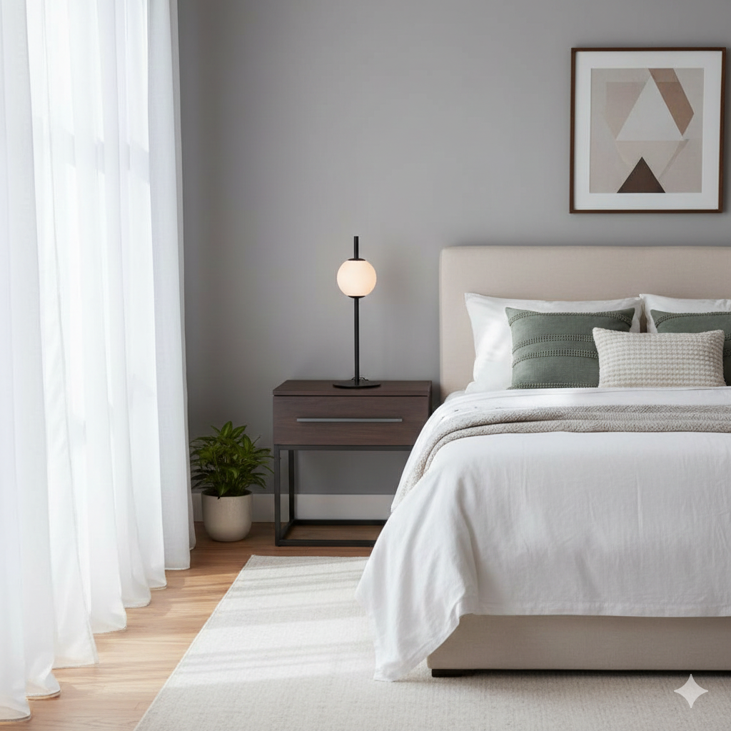La lampada da tavolo a LED 20134 unisce un design moderno a un'elegante funzionalità. Presenta un'elegante struttura in metallo nero e vetro opalino bianco.