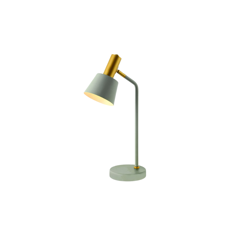 La lampada da tavolo 20220 presenta una resistente struttura in metallo e alluminio, verniciata in un'esclusiva combinazione di tonalità grigio-verde con elementi color oro.