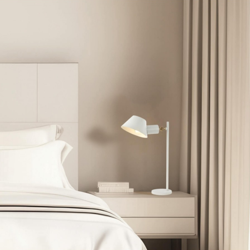 La lampada da tavolo 20222 combina metallo bianco opaco e alluminio con dettagli dorati per un look elegante. È dotata di un portalampada E27 fino a 25W e di un cavo da 150 cm con interruttore on/off per garantire comfort e funzionalità.