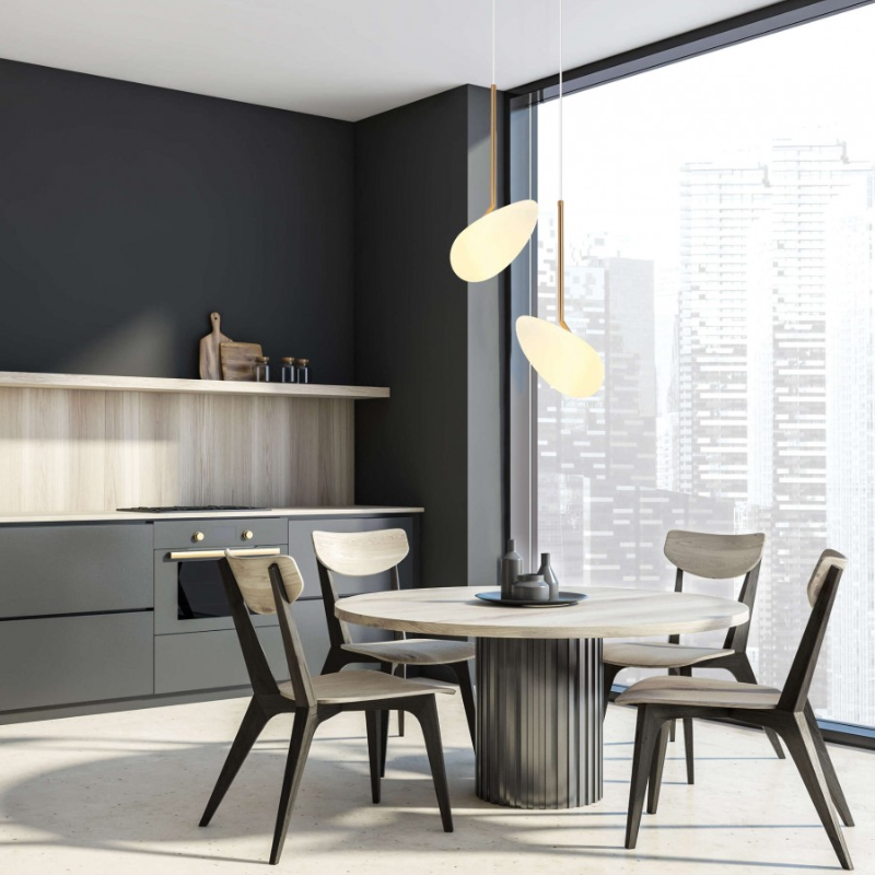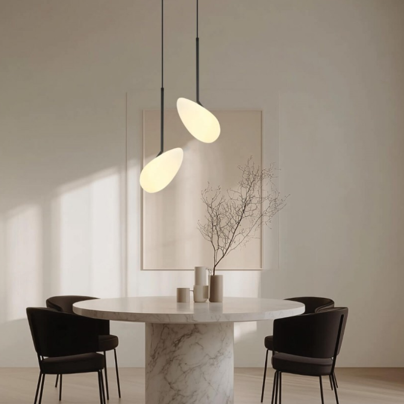 La lampada a sospensione coniuga eleganza minimalista e illuminazione funzionale.