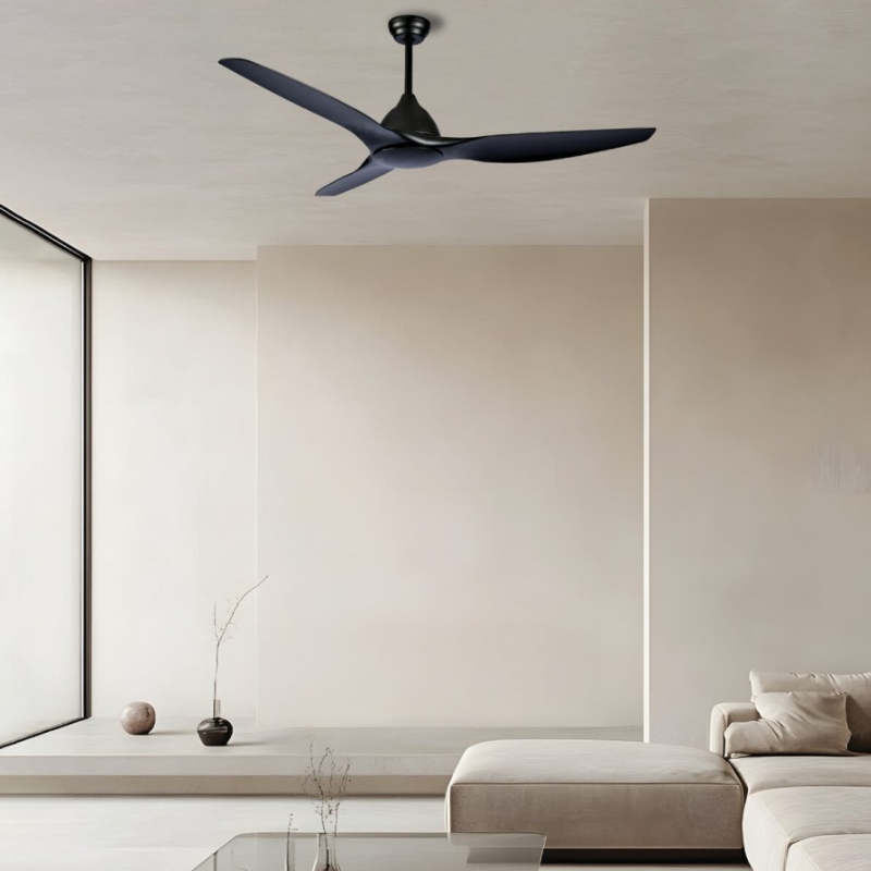 Il ventilatore da soffitto 20258 è dotato di un potente motore AC da 70 W e pale nere opache, che offrono stile ed efficienza. Con 3 velocità e la possibilità di montaggio su soffitti inclinati fino a 20°, è ideale per spazi moderni di 17-28 m².