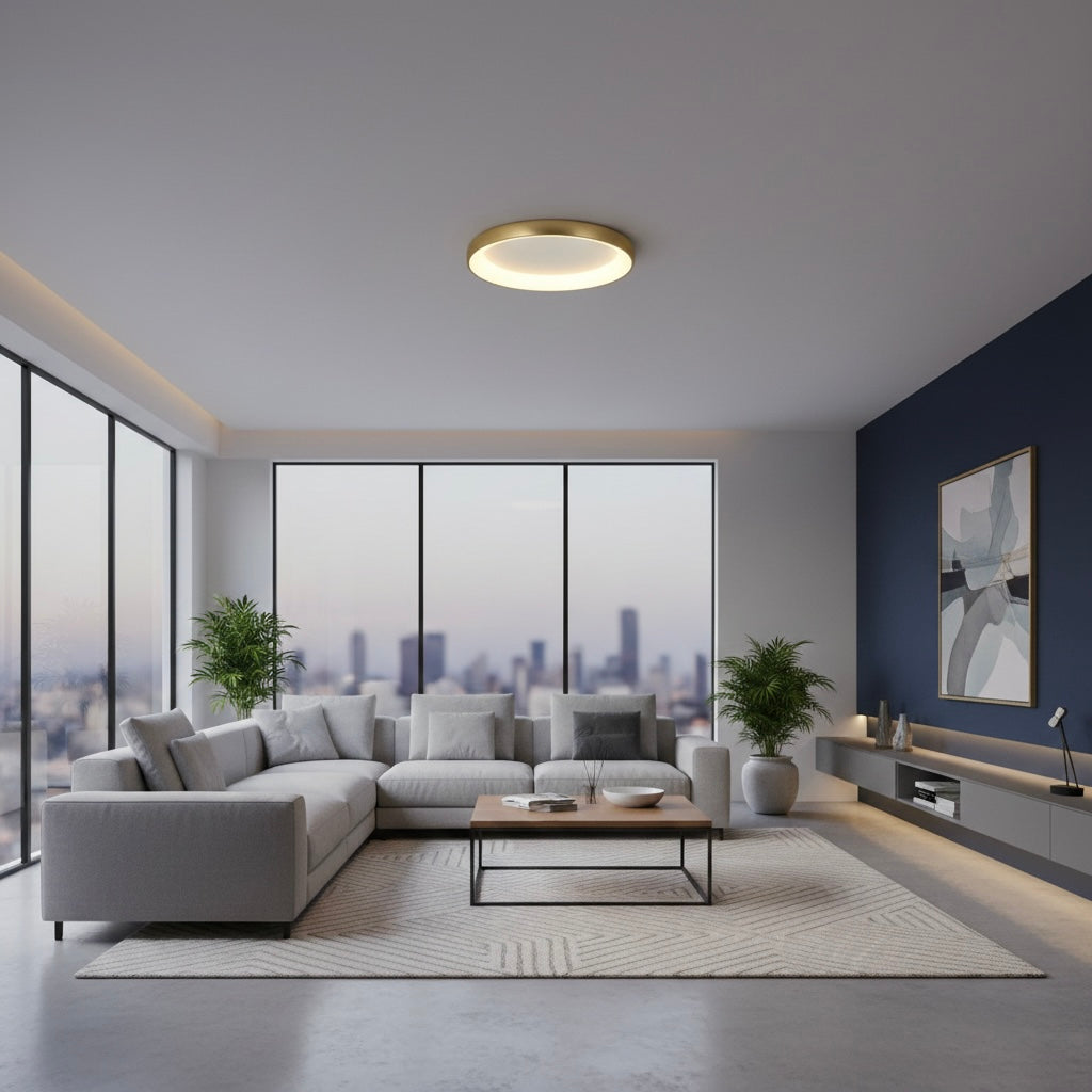 La 2042 è un'elegante plafoniera decorativa per interni, progettata per aggiungere un tocco di lusso a qualsiasi spazio. La sua forma circolare, realizzata in alluminio spazzolato oro di alta qualità, abbinato all'acrilico, crea un'estetica sofisticata e moderna.