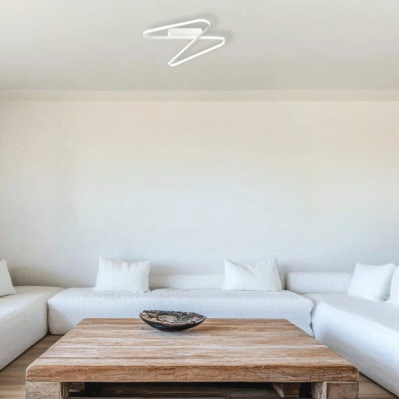 La plafoniera 2065 è dotata di un LED da 45W e fornisce 3040Lm di luminosità con una temperatura di colore di 3000K e un CRi 80. Realizzata in alluminio con motivo a zigzag in una tonalità bianco granulato, con base in metallo nella stessa tonalità ed elementi in silicone, è ideale per interni moderni.