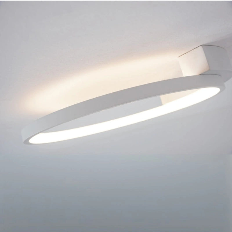 La plafoniera 2075 è una lampada LED decorativa a forma di anello, realizzata in alluminio con rivestimento bianco testurizzato, base in metallo dello stesso colore e parti in silicone.
