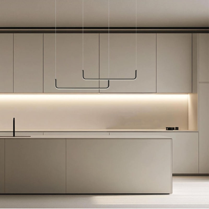 La lampada a sospensione a LED 22010 da 40 W e 3000 K è una moderna lampada a sospensione decorativa caratterizzata da due luci lineari disposte quasi parallelamente su un binario.