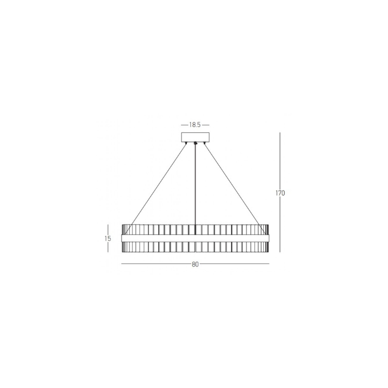 La lampada a sospensione a LED 22040 presenta una lussuosa combinazione di acciaio inossidabile e vetro con finitura oro opaco. Emette 68 W di luce calda a 3000 K e 4350 lumen, offrendo un'atmosfera piacevole con CRI 80 e funzionalità dimmerabile Triac. Il cavo regolabile da 150 cm la rende adattabile a diverse altezze del soffitto, donando eleganza e funzionalità a qualsiasi spazio interno.