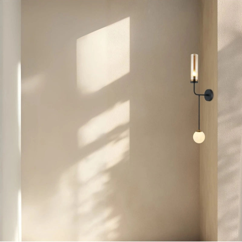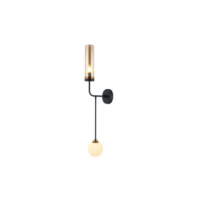 L'applique 22054 presenta un design unico con base in metallo nero opaco e dettagli in ottone anticato, che combinano uno stile retrò con uno contemporaneo.
