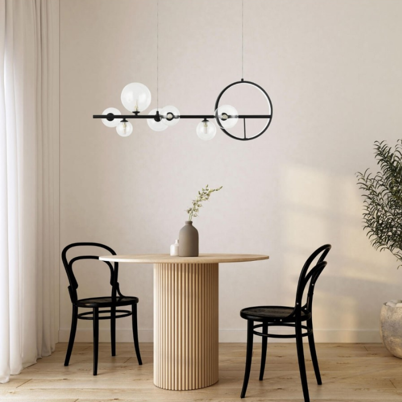 La lampada a sospensione a LED 22063 è una lampada decorativa per interni con un anello luminoso a LED e 7 sorgenti luminose G9 (non incluse).
