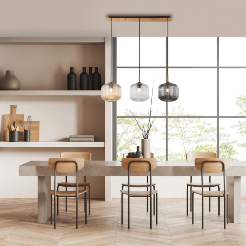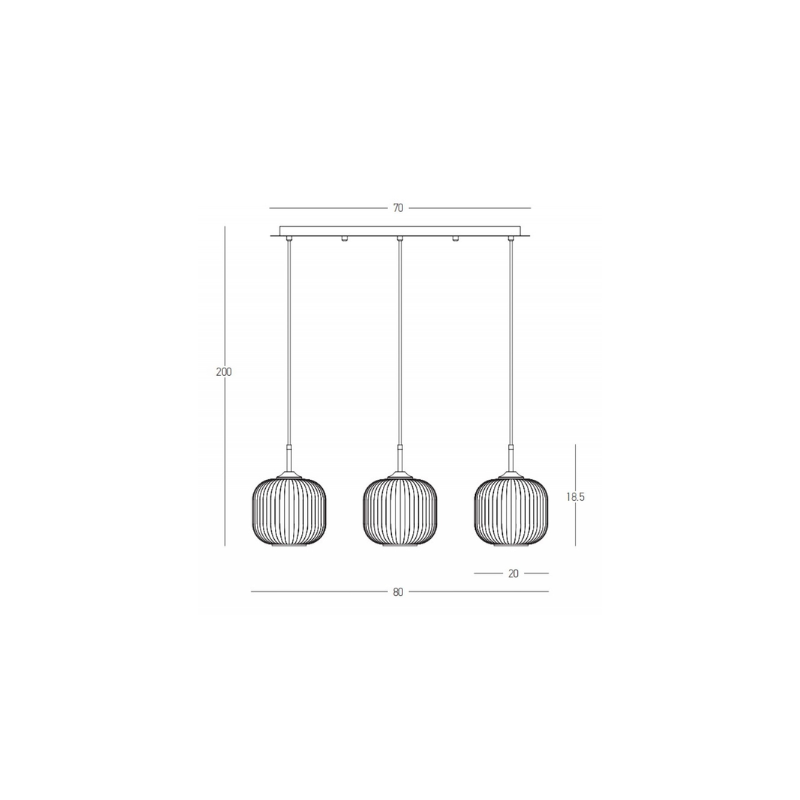 La lampada a sospensione 22074 è un elemento decorativo per interni con tre sorgenti luminose E27, con potenza massima di 40W ciascuna (lampadine non incluse).