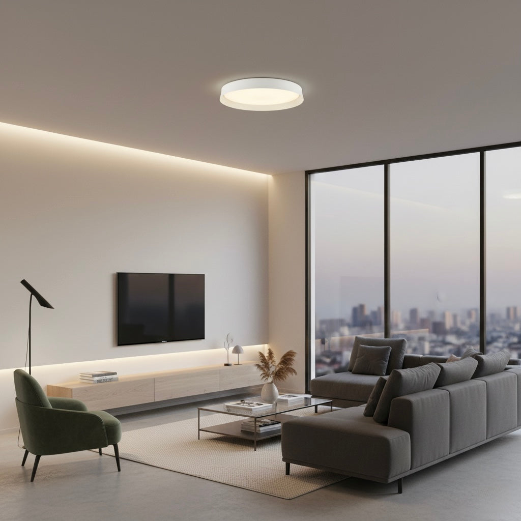 E' una moderna plafoniera a LED dalla forma rotonda, che unisce estetica minimale ed elevata efficienza luminosa.
