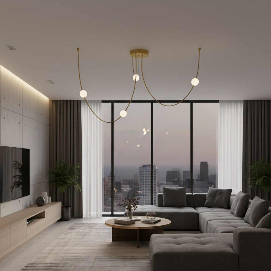 La plafoniera a LED 22248 è un'elegante lampada da interni, realizzata in alluminio con finitura oro opaco e dettagli in silicone.