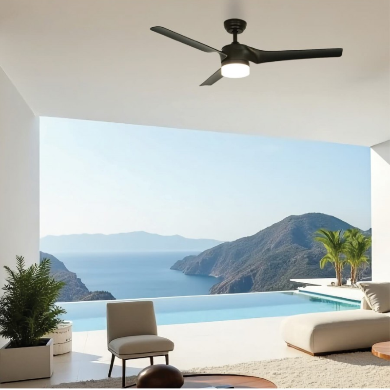 Il ventilatore da soffitto 23004 presenta un elegante design in metallo nero con pale in ABS resistenti e certificazione IP44, ideale per l'uso in interni o in aree leggermente esposte. Dotato di un motore DC da 40 W, funziona silenziosamente a 20 dB e offre sei velocità per un'efficiente circolazione dell'aria. Ideale per l'estate e l'inverno, dispone anche di una modalità notturna con intervalli di tempo regolabili (1 ora, 4 ore o 8 ore). Ideale per spazi da 17 a 28 m², unisce funzionalità e stile per un soggiorno moderno.