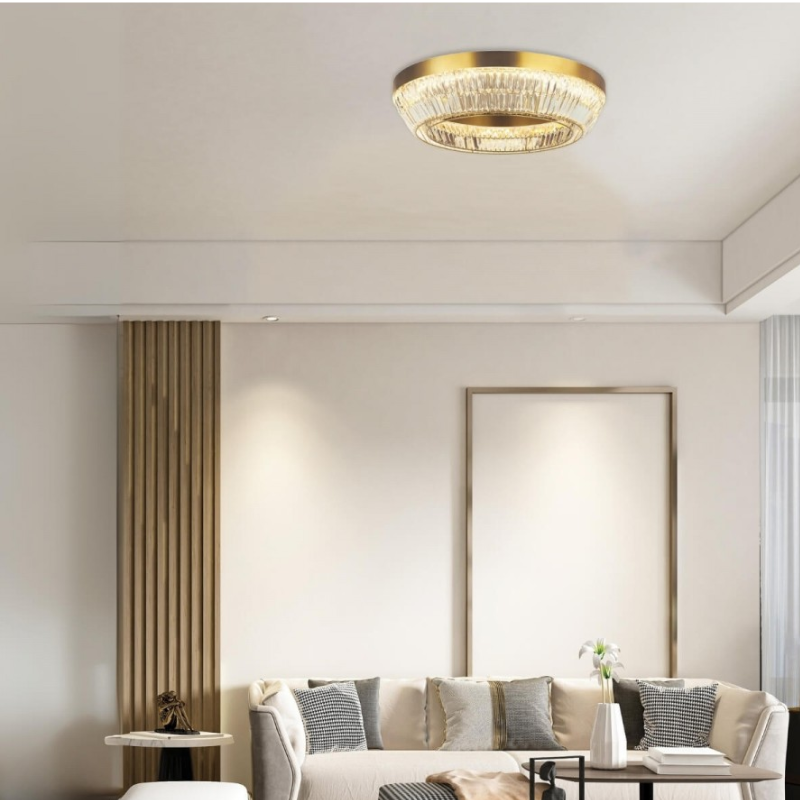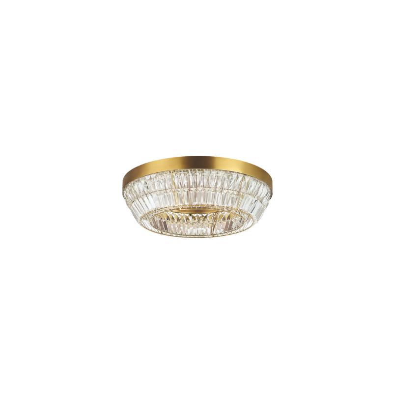 La plafoniera a LED 23047 combina metallo e cristallo con un'elegante finitura in ottone anticato. Con 38W di luce calda a 3000K, 2290 lumen e un CRI elevato di 90, questa lampada con dimmer Triac regolabile offre la possibilità di personalizzare l'atmosfera, ideale per creare un'atmosfera lussuosa in qualsiasi spazio.