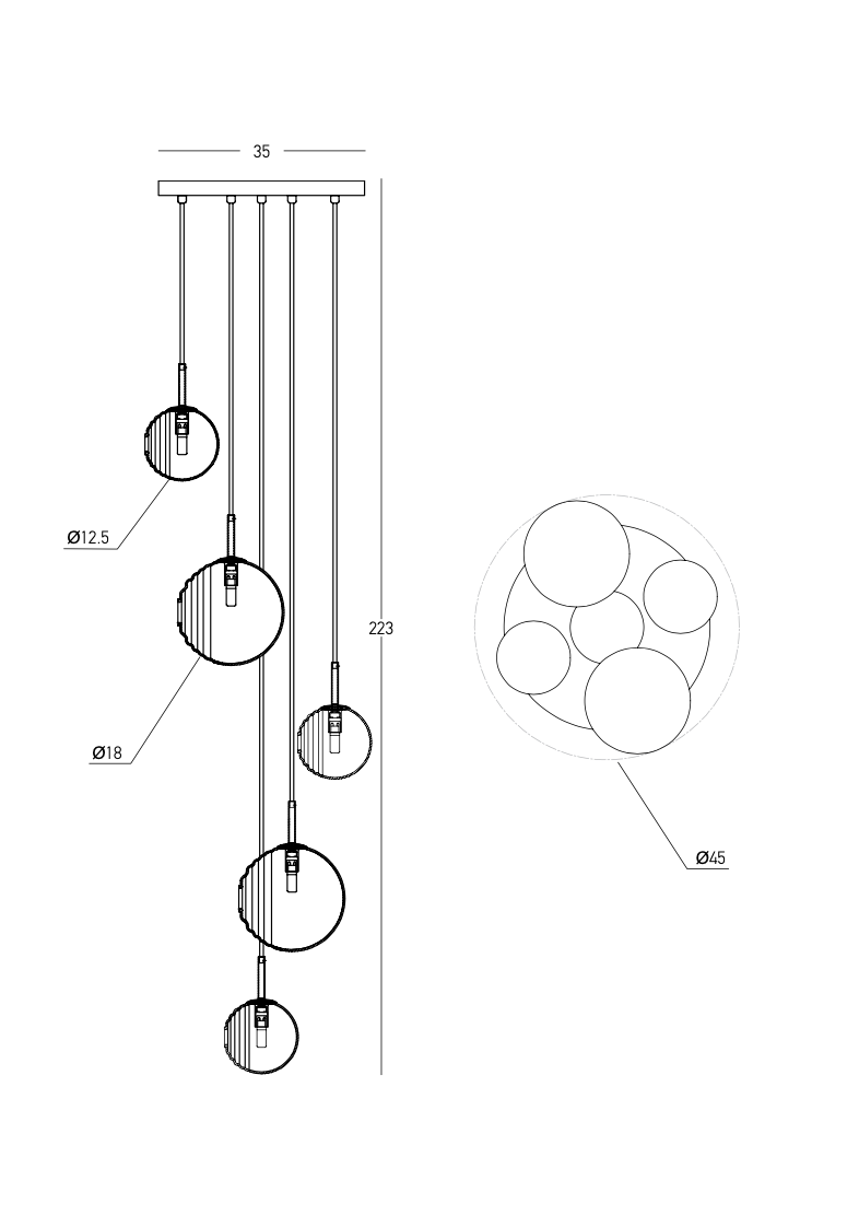 Dimensioni Totali: Ø 45 cm | Altezza max 223 cm