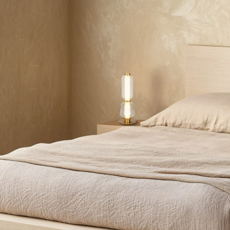 La lampada da tavolo presenta un design moderno.