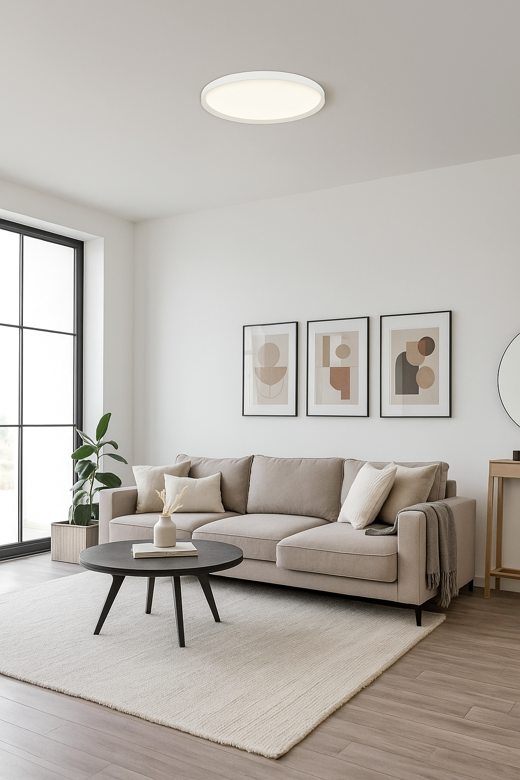 Questa plafoniera/applique a LED combina un design ultra-sottile e minimalista con un'efficace illuminazione. Presenta una forma rotonda e piatta, che ne esalta la modernità.