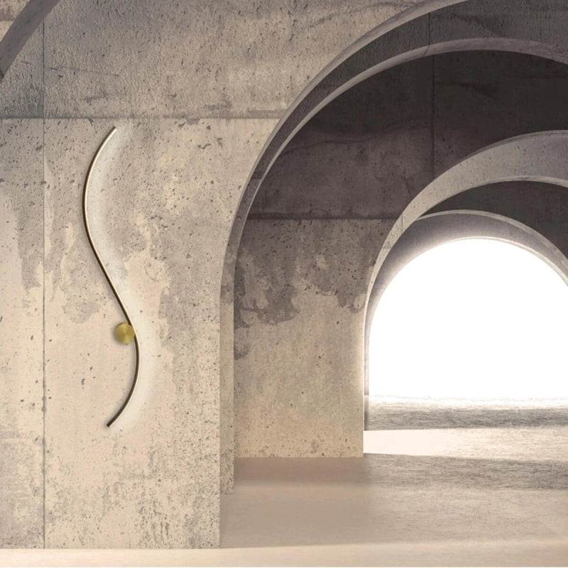 Questa applique moderna a LED è un vero e proprio elemento scultoreo, caratterizzato da una forma a onda o sinuosa. La luce è integrata lungo una sottile barra curva, tipicamente con una finitura a contrasto (come il nero opaco e la luce bianca diffusa), che crea un'illuminazione dinamica e suggestiva sulla parete.