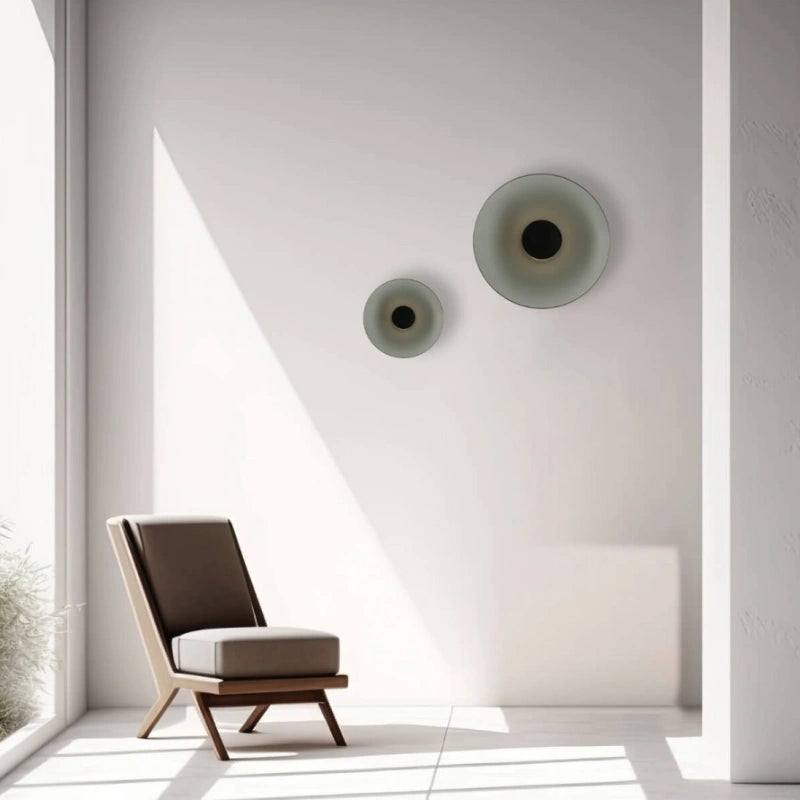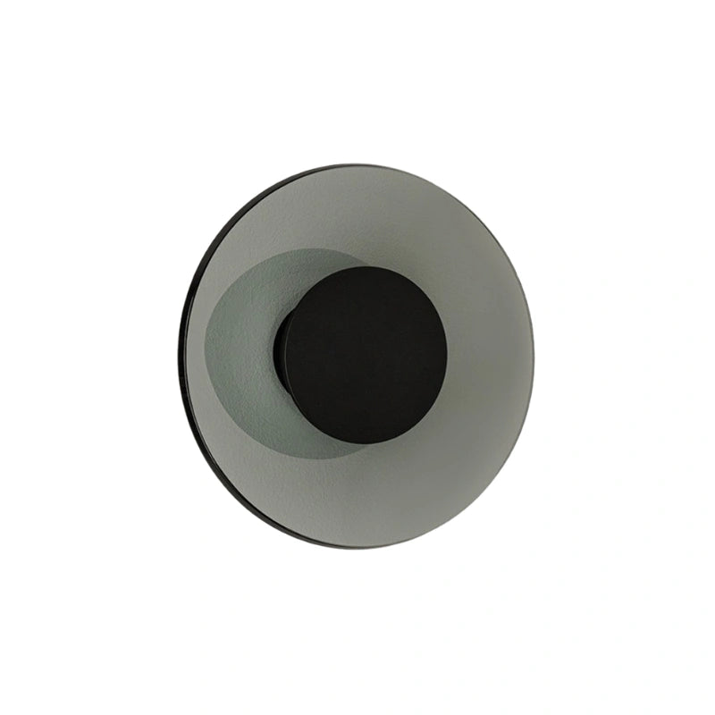Questa applique dal design circolare è un elemento luminoso che cattura l'attenzione grazie alla sua estetica raffinata e al gioco di luci e ombre. È caratterizzata da un disco esterno in vetro fumé, che diffonde una luce calda e avvolgente.