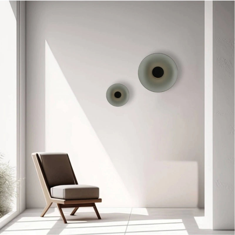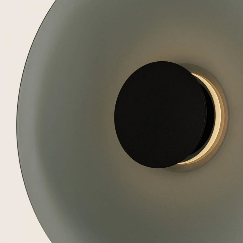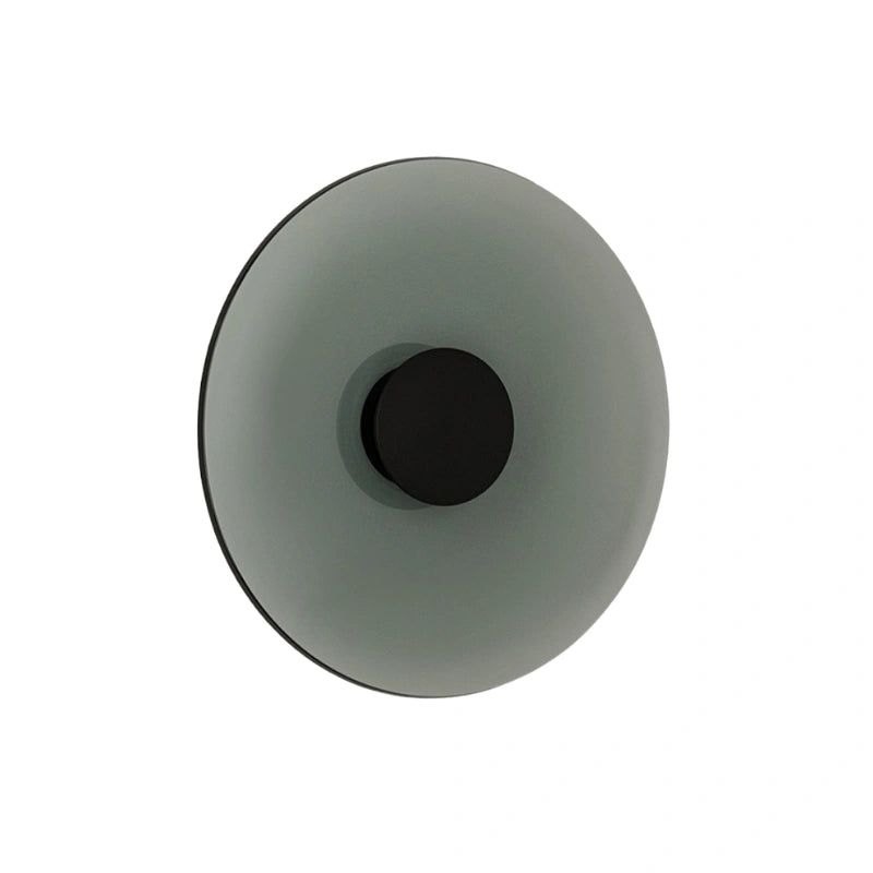 Questa applique dal design circolare è un elemento luminoso che cattura l'attenzione grazie alla sua estetica raffinata e al gioco di luci e ombre. È caratterizzata da un disco esterno in vetro fumé, che diffonde una luce calda e avvolgente.