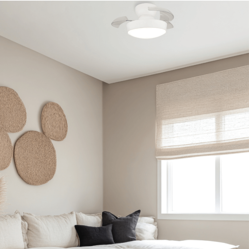 Il ventilatore da soffitto 25329 combina un design moderno con un funzionamento silenzioso di soli 19 dB, offrendo un potente flusso d'aria di 123 m³/min. È dotato di illuminazione a LED da 20 W con opzioni di temperatura colore di 3000 K, 4000 K e 6500 K, adattabili alle esigenze di ogni spazio. Dotato di un motore DC da 32 W e 6 velocità, offre funzionamento estivo e invernale e un timer 1 ora/2 ore/4 ore. Realizzato in metallo bianco opaco e pale in policarbonato trasparente, offre flessibilità ed eleganza discreta. Ideale per camere da letto, soggiorni e uffici, unisce funzionalità, stile ed efficienza energetica.