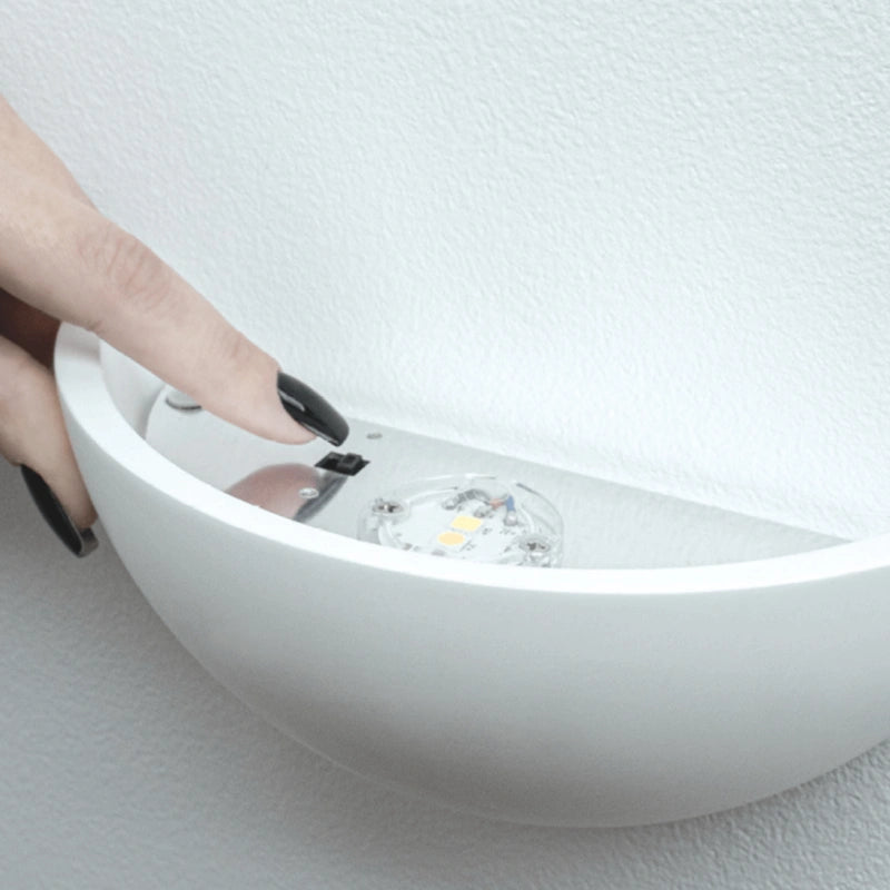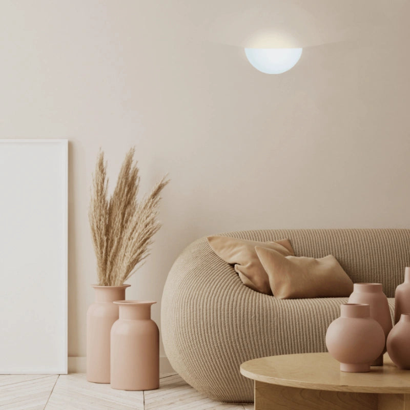 Applique da parete dal design semplice e organico, caratterizzato da una forma a mezza sfera rivolta verso l'alto.