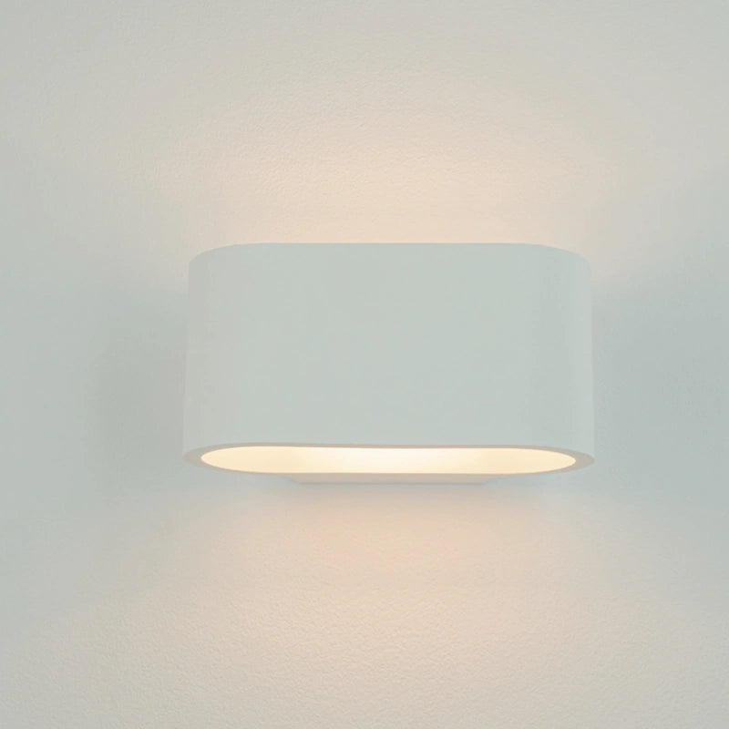 Applique da parete dal design moderno e pulito. Caratterizzato da una forma rettangolare con angoli arrotondati, è realizzato in finitura bianca opaca.