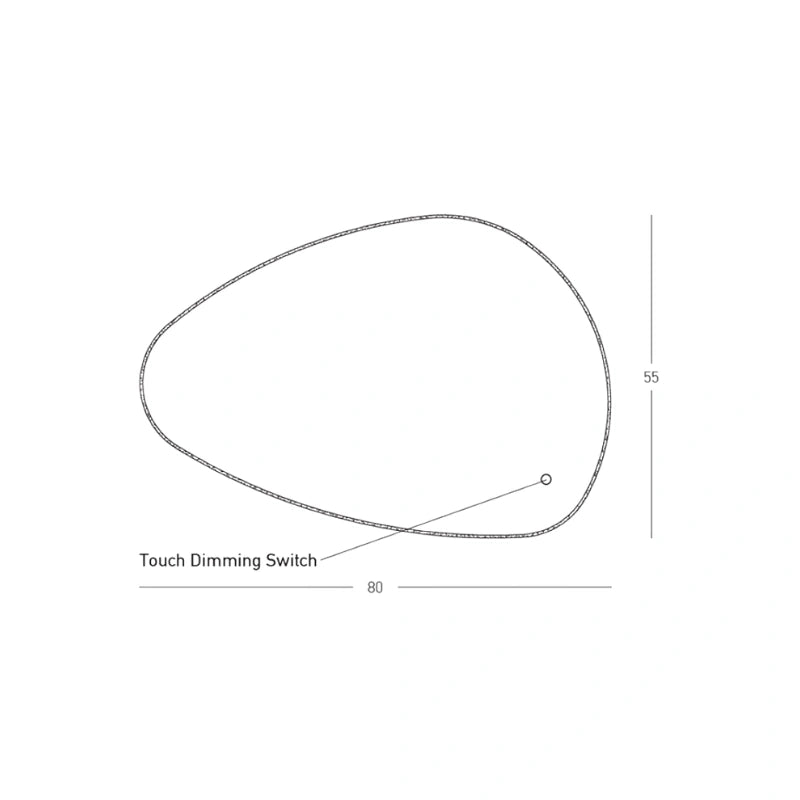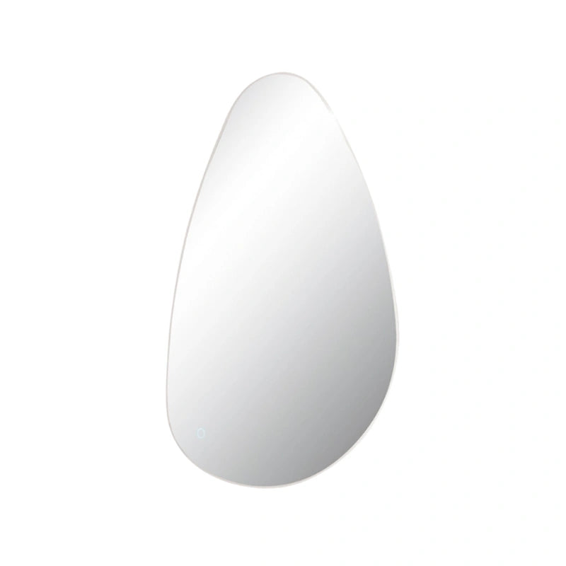 Specchio da bagno di design dalla forma organica e irregolare, con retroilluminazione a LED integrata lungo il perimetro. Dotato di interruttore touch, aggiunge un tocco moderno ed elegante all'ambiente.