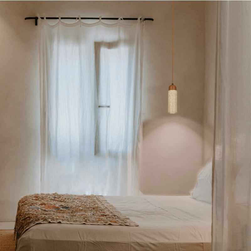 Questa lampada a sospensione è un elegante punto luce pensato per creare un'atmosfera intima e accogliente. Si tratta di una sospensione singola, dal design verticale e minimalista.