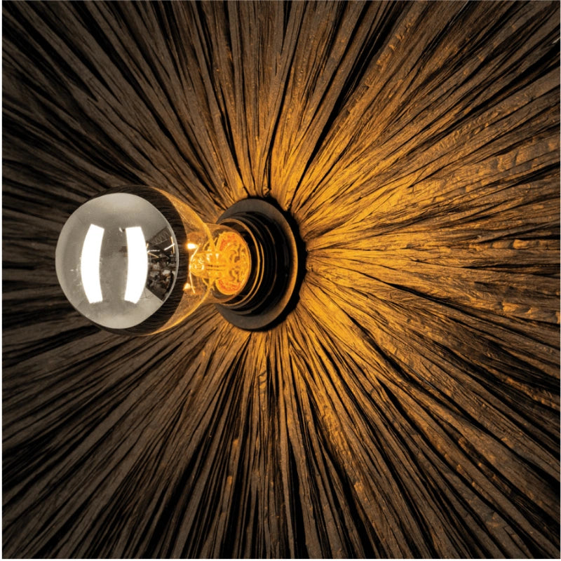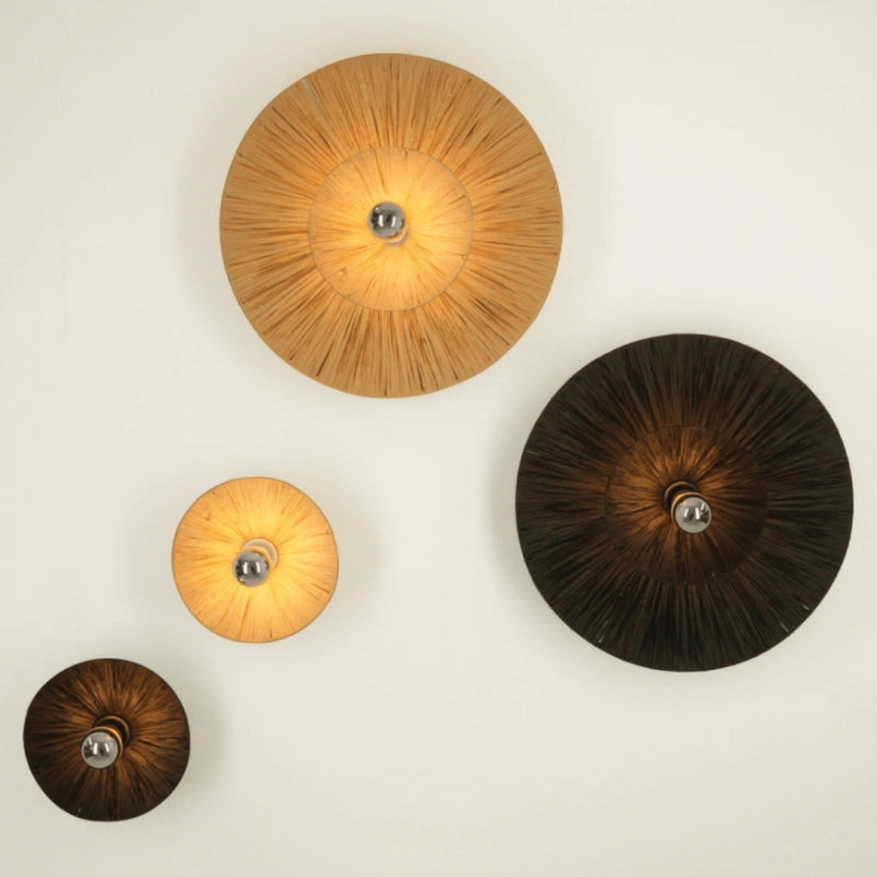Questa installazione a parete è composta da una serie di applique che fungono da veri e propri elementi decorativi scultorei, perfetti per ambienti che prediligono lo stile boho chic, etnico o l'arredamento naturale.