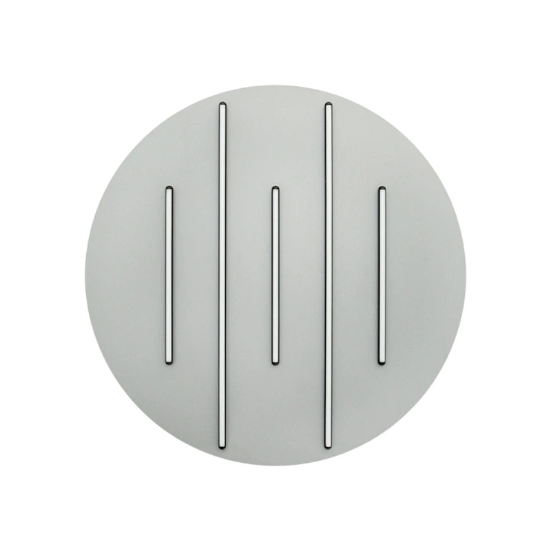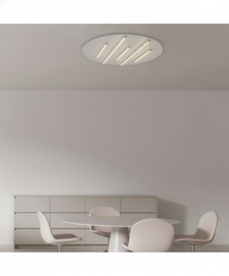 Un'applique scultorea che gioca con forme e colori. Il grande disco in una calda tonalità funge da sfondo per due barre luminose LED parallele, che creano un forte effetto grafico e moderno. Ideale per aggiungere un tocco di colore e un'illuminazione d'accento unica a qualsiasi parete.