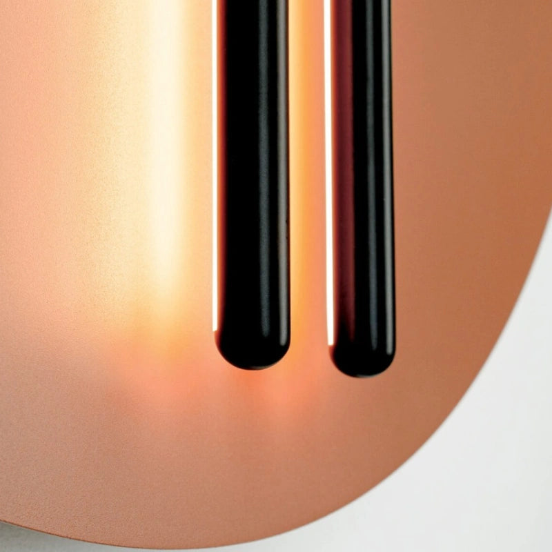 Crea un'atmosfera avvolgente con questa applique che gioca con le linee e le luci. Il diffusore circolare emette una luce soffusa e rilassante, mentre le due barre verticali nere proiettano ombre decise, creando un affascinante contrasto visivo. Perfetta per corridoi, salotti o camere da letto dove desideri un'illuminazione suggestiva e non invasiva.