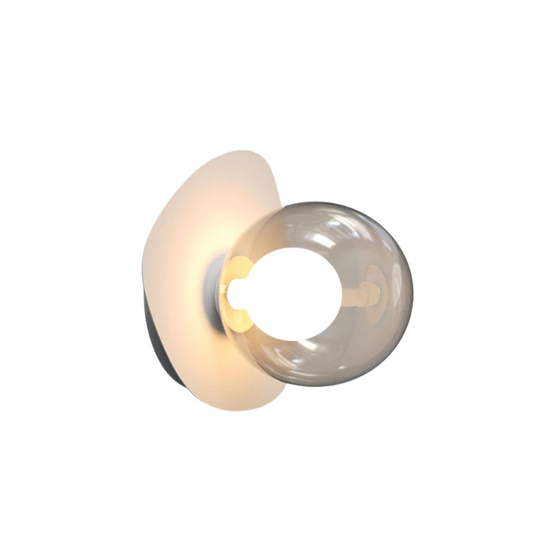 Questa applique dal design organico e contemporaneo cattura l'attenzione con la sua forma unica. Il diffusore posteriore, morbido e asimmetrico, diffonde una luce calda e accogliente, creando un alone luminoso sulla parete. Al centro, una sfera di vetro fumé o colorata (a seconda della variante) racchiude elegantemente la fonte luminosa, aggiungendo profondità e un tocco di sofisticata originalità.