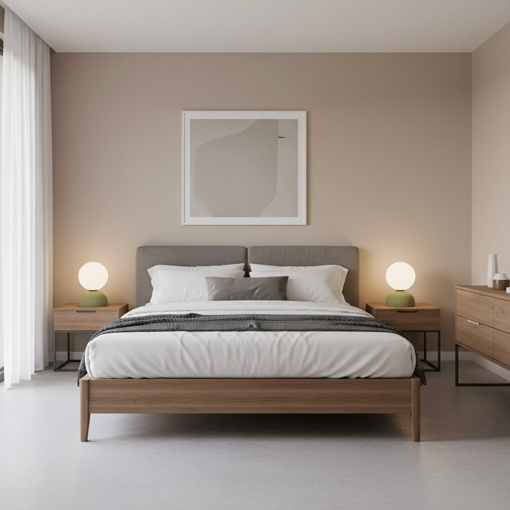Questa lampada è l'elemento perfetto per creare un'atmosfera rilassante sul tuo comodino. Il design combina una base semirotonda in una sofisticata tonalità di verde, caratterizzata da una texture a coste che aggiunge profondità visiva. A contrasto, il diffusore è una sfera di vetro opalino che diffonde una luce morbida e uniforme. È un pezzo che unisce il design contemporaneo a un tocco di ispirazione retrò, ideale per la lettura serale o come luce d'accento.