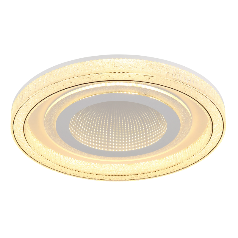 - Plafoniera metallo bianco satinato, cristallo in acrilico trasparente, plastica specchiato Effetto 3D, acrilico trasparente, Dimmerabile, Molteplici passaggi tramite interruttore a muro, Colore selezionabile, Funzione di memoria, Luce notturna,Telecomando, Batteria inclusa 2x AAA