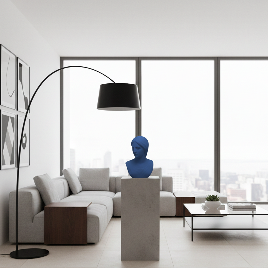 Antonella non è un semplice complemento d'arredo, ma una dichiarazione di stile. Questo busto scultoreo reinterpreta i canoni della bellezza neoclassica attraverso una lente vibrante e audace.