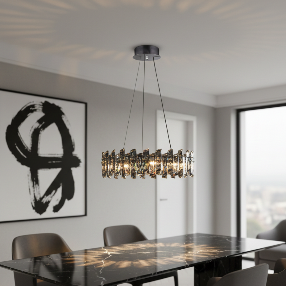 Arcadia è una sospensione a 9 luci dal design classico ed elegante, caratterizzata da una struttura in metallo lucido e da magnifici cristalli K9 che diffondono la luce in modo morbido e scintillante. La sospensione è perfetta per illuminare con un tocco di raffinatezza qualsiasi ambiente, creando un'atmosfera suggestiva e accogliente.