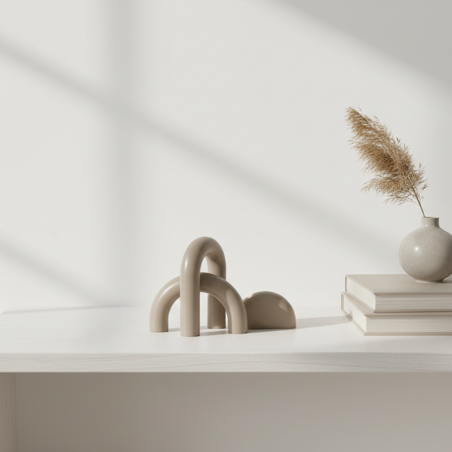 L'Arch Set è un trio di sculture decorative che esplora la purezza della forma e l'equilibrio visivo. Caratterizzato da linee curve e volumi tubolari, questo set trasforma il concetto architettonico dell'arco in un complemento d'arredo moderno e sofisticato.