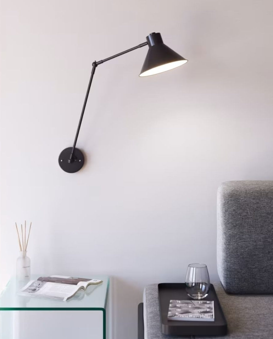 Questa applique è un perfetto esempio di design industrial-chic che unisce funzionalità e minimalismo. È la soluzione ideale per chi cerca un'illuminazione direzionale senza ingombrare il pavimento o i tavolini.