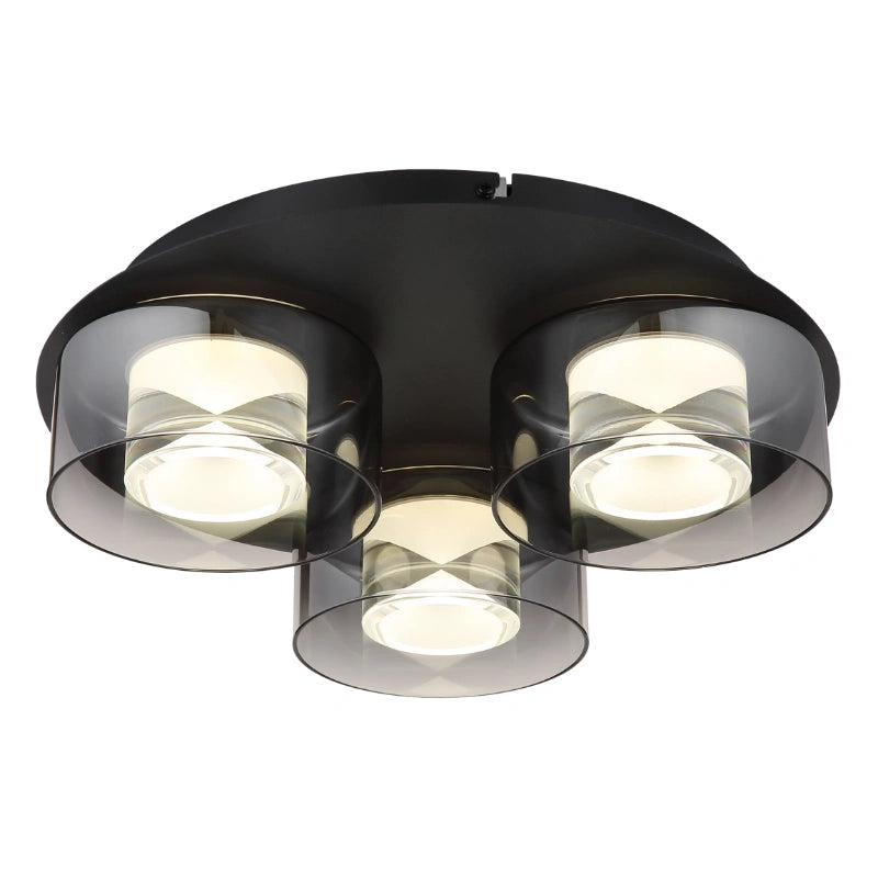 - Plafoniera metallo nero satinato, vetro color fumè, trasparente, acrilico opale