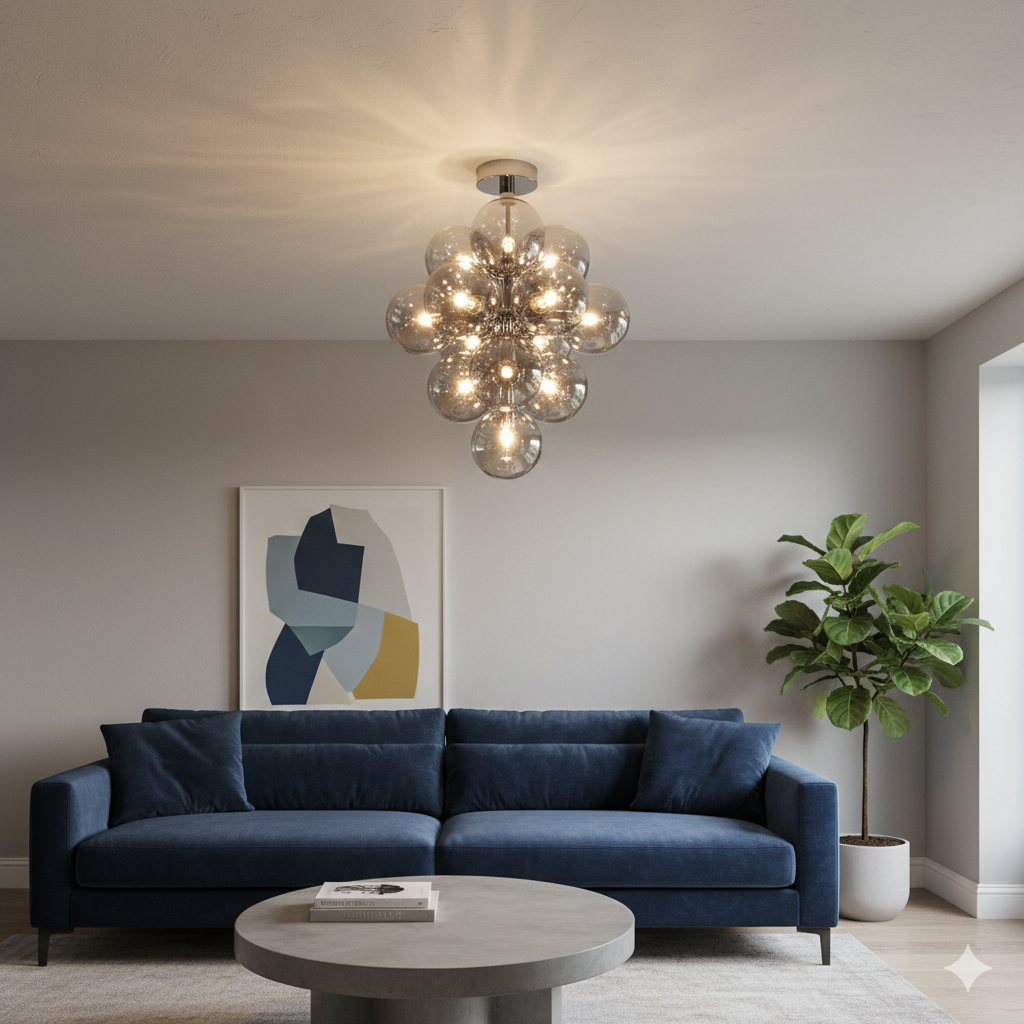 La plafoniera Conor non è un semplice corpo illuminante, ma una vera e propria scultura di luce.