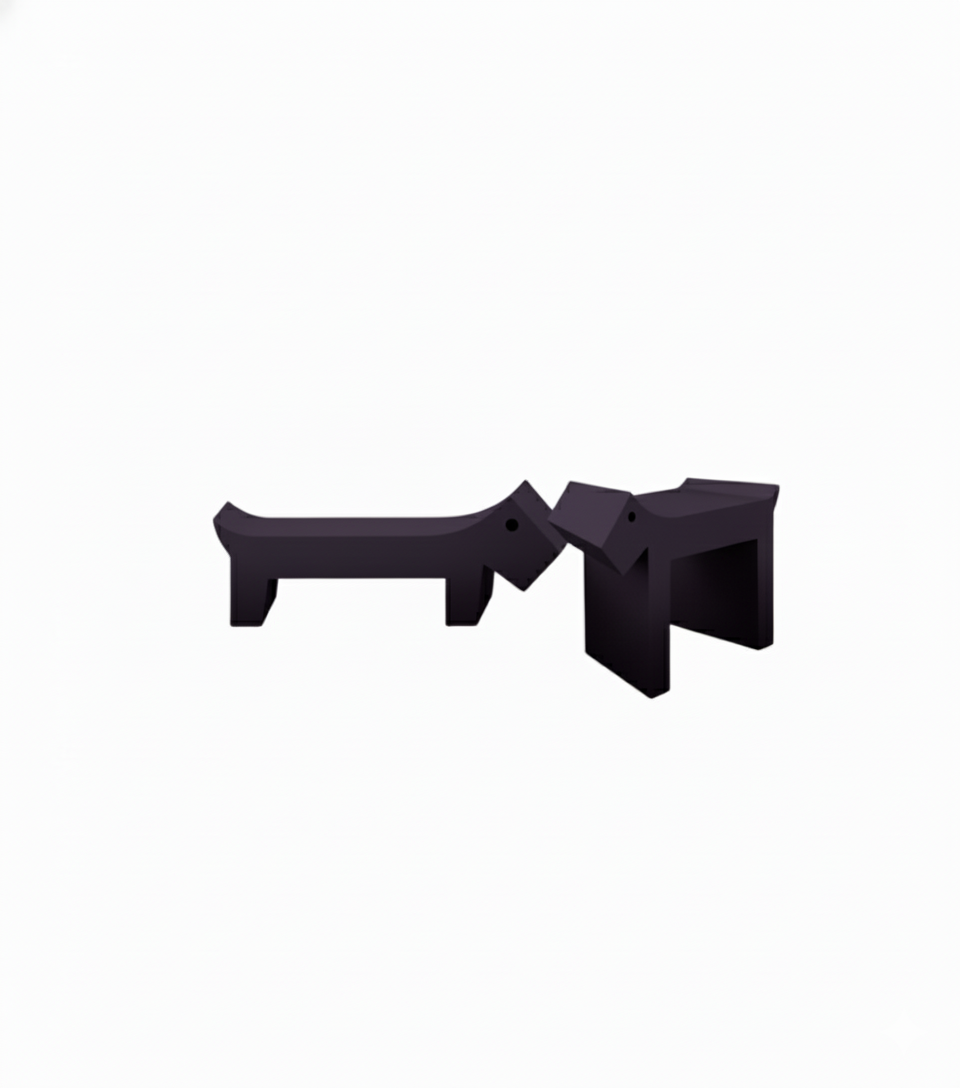 Queste originali creazioni di design uniscono l'estetica calda del legno a una forma ludica e minimalista. Il set è composto da due pezzi distinti, chiamati Bassotto e Dog, che reinterpretano la figura canina attraverso linee geometriche e pulite.
