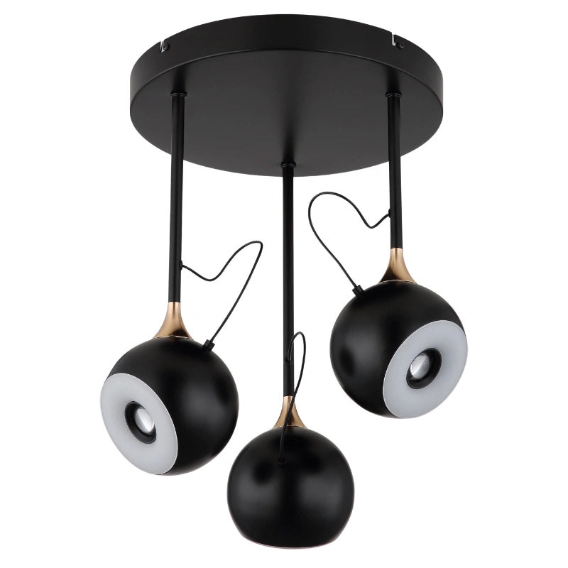 - Plafoniera metallo nero satinato, metallo canna di fucile, metallo color oro, acrilico opale, orientabile