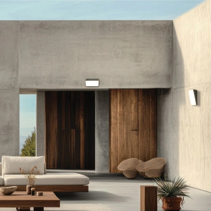 Questa applique orizzontale si distingue per il suo design minimalista e scultoreo, con un forte accento geometrico, ideale per facciate moderne e ambienti esterni che valorizzano l'architettura.