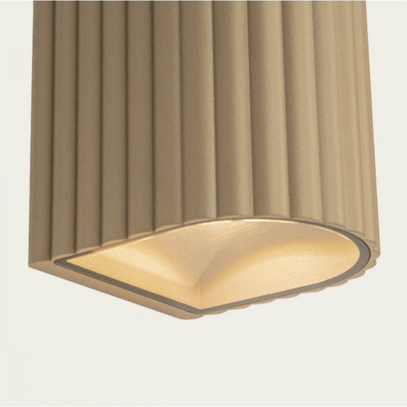 Questa applique si distingue per il suo design scultoreo e l'uso di una texture raffinata, ideale per ambienti interni o esterni protetti che prediligono un'estetica elegante e mid-century o contemporanea.