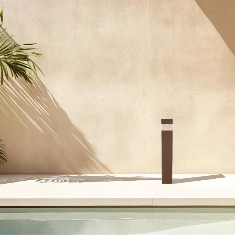 Questo paletto luminoso (o bollard light) si distingue per il suo design a colonna geometrica e la sua robustezza, ideale per vialetti, ingressi o giardini in un contesto moderno o classico.