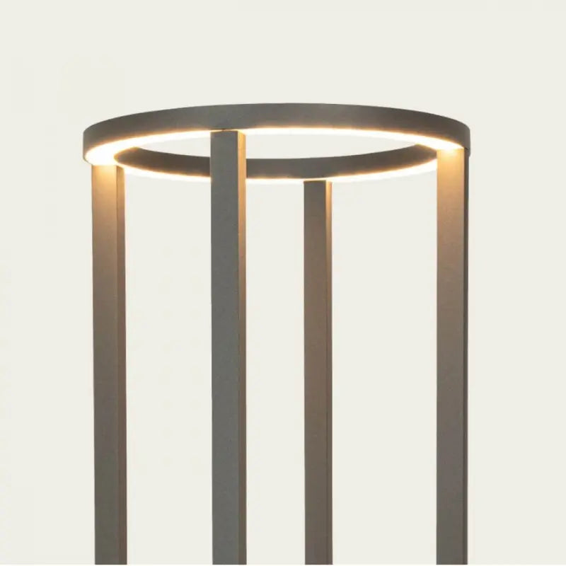 Questa lampada da giardino si presenta come un elemento decorativo e strutturale che unisce un design moderno e geometrico a un'illuminazione d'ambiente. È ideale per illuminare angoli verdi, terrazze o per accentuare la presenza di piante e arredi esterni.